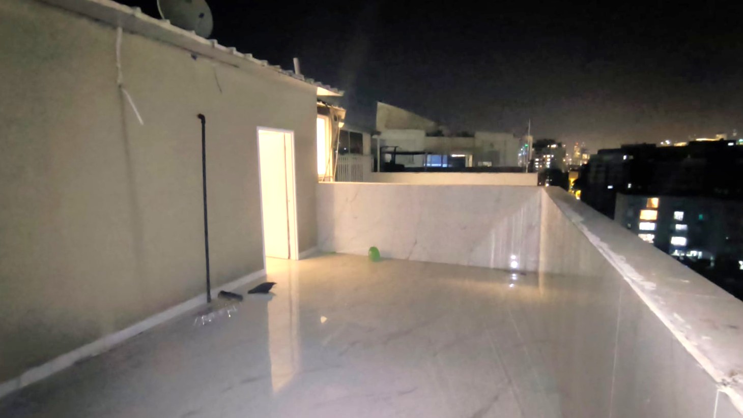 Квартира полностью отремонтирована и находится в отличном состоянии. Жилая площадь составляет 80 кв. метров, плюс просторная крыша площадью 80 кв. метров с открытым видом на город — идеальное место для отдыха, приёма гостей или уютных вечеров на свежем воздухе.